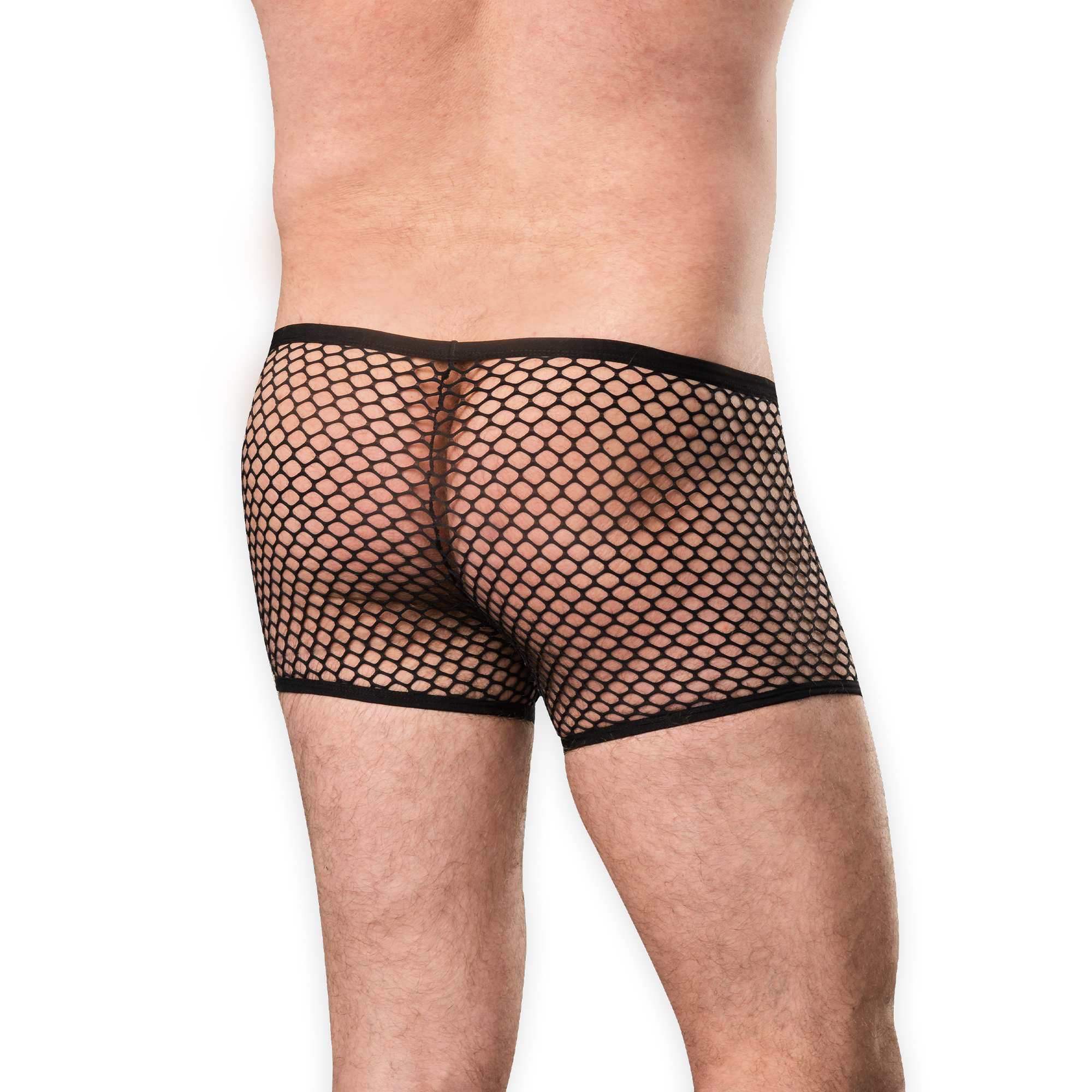 Deze boxershort is gemaakt van rekbare visnetstof.